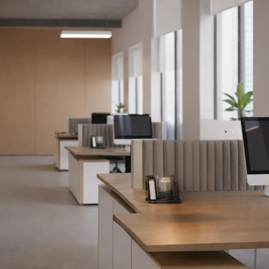Ces matériaux diffusent une lumière douce qui rend l’espace de travail plus chaleureux.