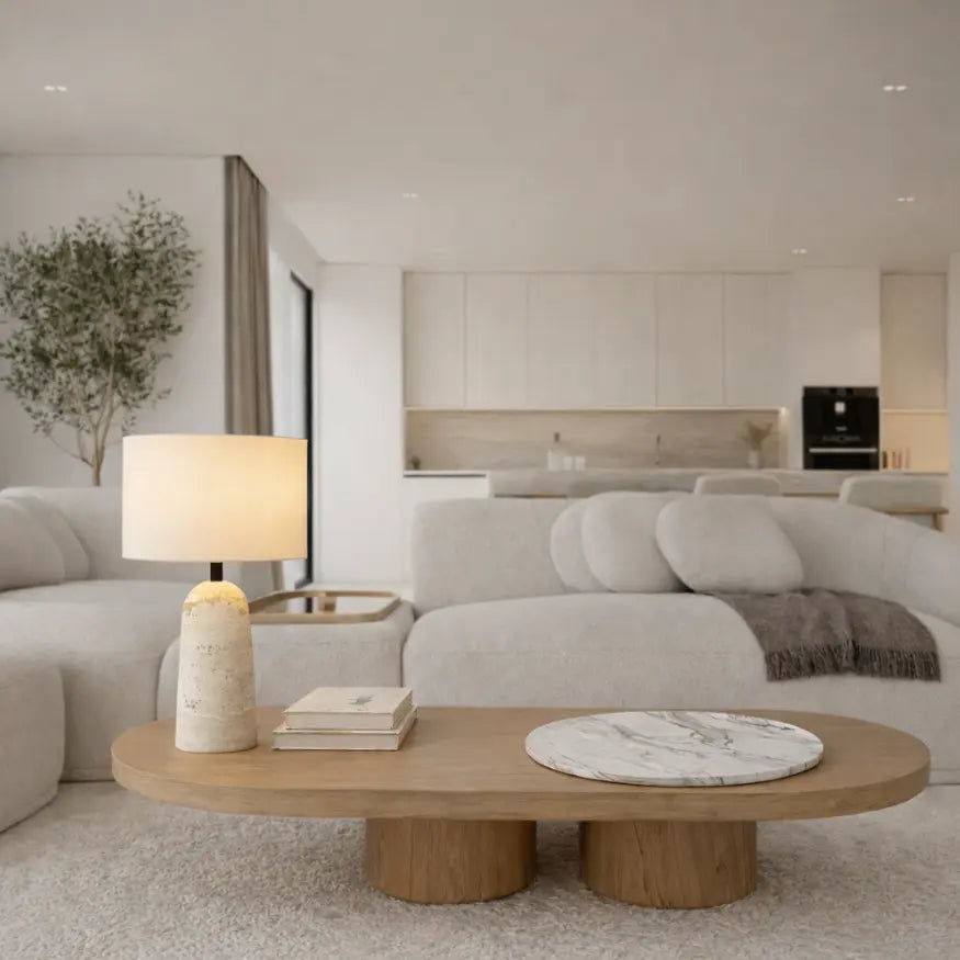 Ces matériaux permettent de diffuser une lumière douce et chaleureuse qui s’intègre parfaitement dans un salon contemporain.