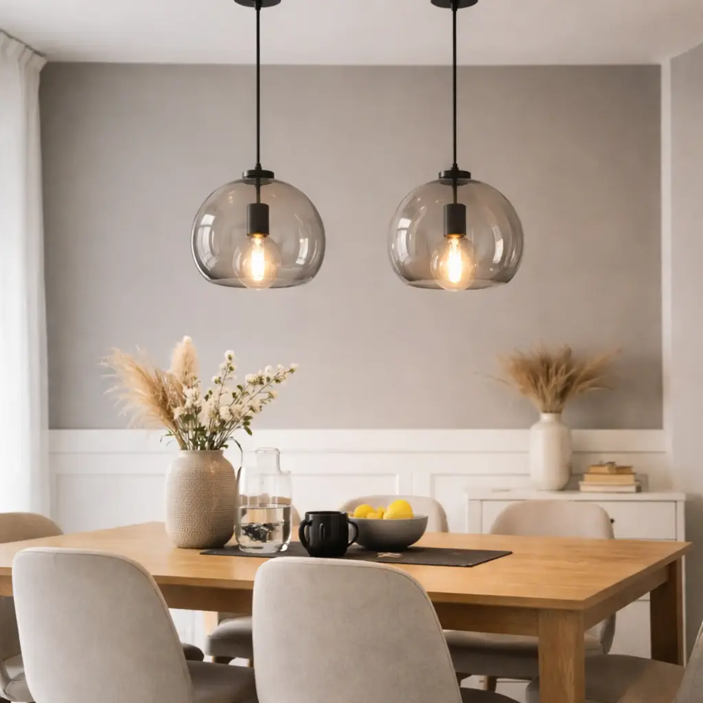 Avec sa structure fine et son verre légèrement fumé, cette suspension en verre crée une présence discrète mais élégante. Elle apporte une touche contemporaine et moderne sans surcharger l’espace, idéale dans un intérieur épuré ou scandinave.