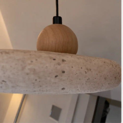 Suspension design scandinave en travertin & bois Ø 30 cm | Lyng